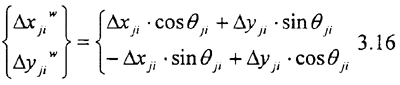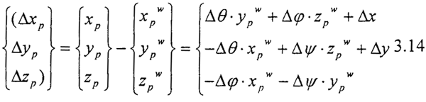 ,Δψ,Δθ為微小位移,則外齒輪任意一點PW(XPW,YPW,ZPW)在外齒輪相對內(nèi)齒輪發(fā)生位移后,在靜止坐標系內(nèi)的坐標為:PW(XP,YP,ZP)其值由式3.12~3.13定。