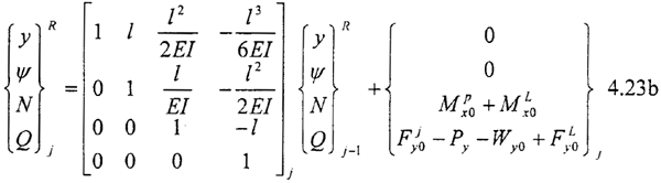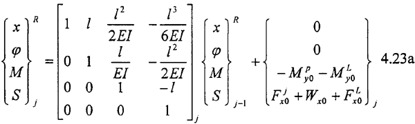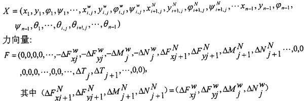 為總剛度陣,乃是因為式(4.20)還不是彎扭耦合振動方程的最終形式。這是因為1):式(4.20)右端含有未知力ΔFxjk,ΔFyjk,ΔMjk,ΔNjk,ΔTj,(k=w,N),方程組中未知量個數(shù)多于方程個數(shù);2):ΔFxjk,ΔFyjk,ΔMjk,ΔNjk,ΔTj,(k=w,N)是本征的。必須解決上述這兩個問題,才能得到彎扭耦合振動方程。因而我們還需要尋求一種關系,通過這種關系,解決上述兩個問題,使得各轉(zhuǎn)子的彎扭振動及轉(zhuǎn)子間的彎扭振動耦合起來,并使彎扭耦合振動的方程組有定解,即最終使(4.20)式化為如下標準形式