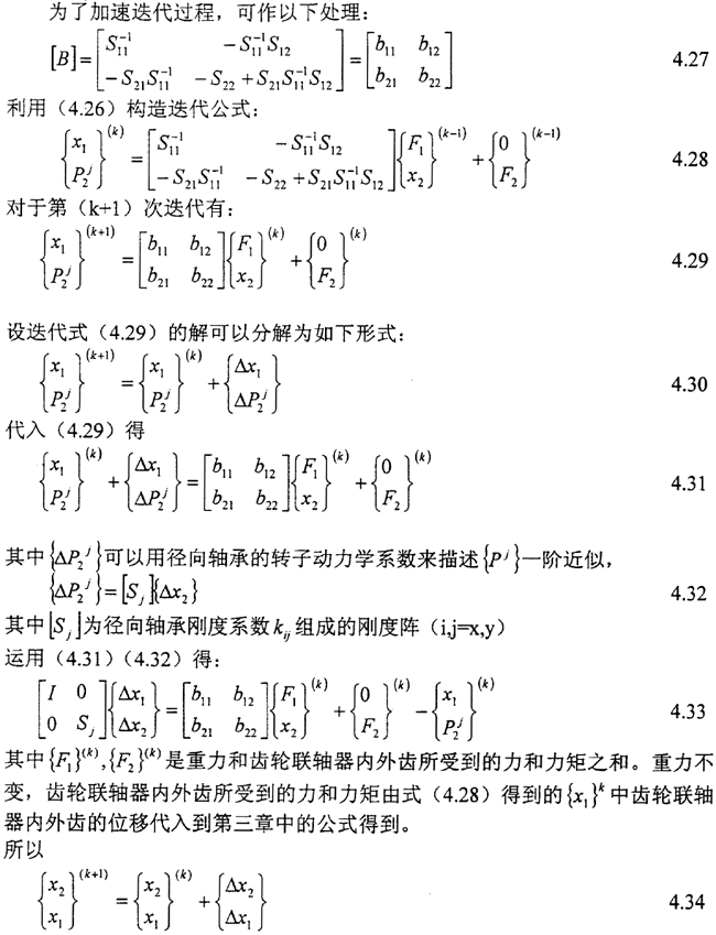 方程(4.1a),(4.1b)仍然可以被用來求解軸系的負荷分配,只不過齒時應表在成如下形式: