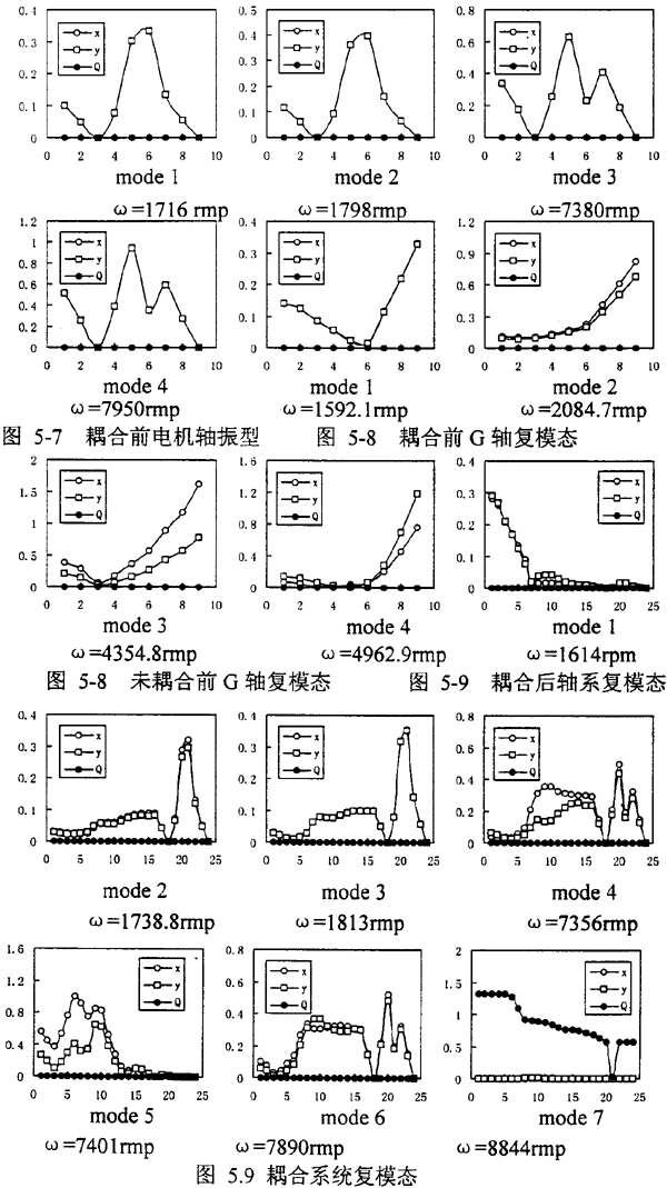 本章首先討論剛性支撐齒輪聯(lián)軸器軸系的系統(tǒng)模態(tài)、特征值。揭示了齒輪軸系彎扭耦合振動(dòng)的特征,并說明齒輪聯(lián)軸器內(nèi)外齒相對(duì)偏心(轉(zhuǎn)角、徑向),是造成齒輪聯(lián)軸器連接軸系彎扭耦合的主要原因。主要得出以下結(jié)論: