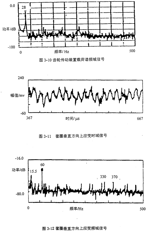 (3)在齒輪傳動(dòng)裝置的軸承外圈套圈上拾取的應(yīng)變信號(hào)能直接全部反映齒輪傳動(dòng)裝置內(nèi)的軸系部件(或稱傳動(dòng)零件)的故障振動(dòng)信號(hào),利用故障診斷特征參數(shù)-傳動(dòng)零件的故障振動(dòng)頻率成份和頻率處的功率對此信號(hào)進(jìn)行分析,可對齒輪傳動(dòng)裝置內(nèi)的軸系部件進(jìn)行正確的故障診斷。