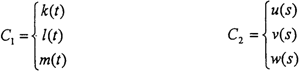 假設(shè)M點(diǎn)是兩軸的嚙合點(diǎn)(運(yùn)動(dòng)曲線(xiàn)C1和C2的交點(diǎn),也就是傳力點(diǎn))假設(shè)初始條件為:當(dāng)時(shí)間t=0時(shí),