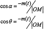 設(shè)兩曲線(xiàn)的交點(diǎn)M(嚙合點(diǎn))與兩軸的交點(diǎn)O的連線(xiàn)OM與輸入軸(Zi軸的負(fù)半軸)的夾角和OM與輸出軸和夾角分別為:(在此處|OM|=