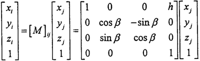 進(jìn)行坐標(biāo)變換,則坐標(biāo)系OXjYjZj中的某點(diǎn)在OXiYiZi坐標(biāo)系中的坐標(biāo)可表示為: