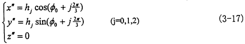 在動(dòng)坐標(biāo)系O″X(qián)″Y″Z″中三叉桿軸頸的軸線n1、n2、n3方程為: