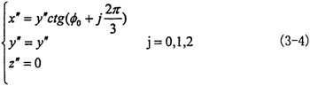 故三叉桿軸頸的軸線方程由坐標(biāo)系O″X(qián)″Y″Z″轉(zhuǎn)到坐標(biāo)系O′X′Y′Z′為: