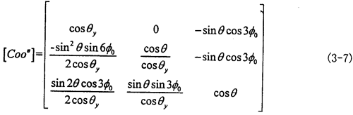 由式(3-6)可知|θy|<θ,|θx|<θ一般來(lái)說(shuō)θ值非常小,則θy和θx則更小。到此方向余弦矩陣[Coo″]的所有項(xiàng)均可求出。其具體的形式如下(為簡(jiǎn)化書(shū)寫(xiě)將θy作為已知參數(shù)代入):