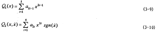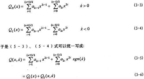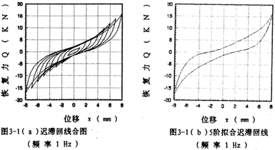 2,將擬合得到的各冪函數(shù)多項(xiàng)式奇、偶次項(xiàng)分開寫成(3-5)式形式并作對應(yīng)的曲線圖,如圖3-2(見34頁)所示,這樣就將恢復(fù)力分解成了單值非線性函數(shù)曲線和雙值的非線性函數(shù)閉合曲線,由此得到了對應(yīng)的