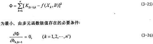 已知K2i-1 (A)是關(guān)于自變量X=[A,A2,…An′]T和待定參數(shù)B=[ b0,2i-1,b1,2i-1,…,bn′,2i-1]T的形式已知的函數(shù)(3-13),簡(jiǎn)寫(xiě)成:
