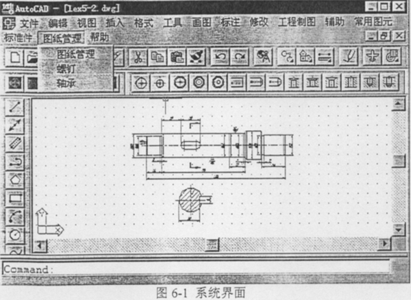 提取常用結(jié)構(gòu)單元(軸套類、叉架類、盤蓋類、箱體類、螺紋聯(lián)結(jié)類等),并全部建立參數(shù)化繪圖程序。用通用CAD系統(tǒng)直接繪制的圖形是以實體(如點、線、圓弧等)為單位管理的,圖形修改、查詢很不方便。本系統(tǒng)通過定義擴展實體數(shù)據(jù)(XData)實現(xiàn)了全部的圖形結(jié)構(gòu)化管理,將具有工程意義的結(jié)構(gòu)圖形定義為圖元,大大提高了設(shè)計效率。