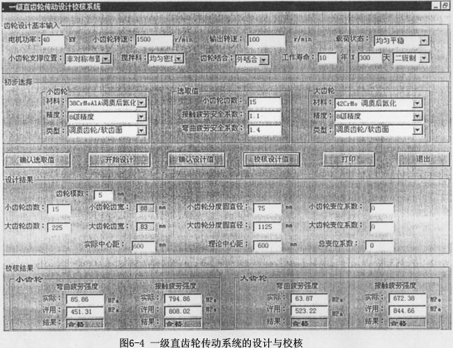 本系統(tǒng)根據(jù)企業(yè)的要求,將行業(yè)的普遍需求和企業(yè)的特殊需求結(jié)合起來,既具有通用性,又具有專用性。通用性表現(xiàn)為可以對任意類型的圓柱齒輪嚙合對(包括直齒輪、斜齒輪之、行星齒輪的內(nèi)嚙合和外嚙合等等)進行校核,專用性表現(xiàn)為針對一級、二級直齒輪和斜齒輪和斜齒化嚙合傳動系統(tǒng)的設(shè)計與校核。