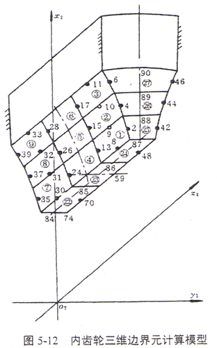 對(duì)共軛鼓形齒輪用邊界元法進(jìn)行接觸問(wèn)題的研究與分析時(shí),首先只需對(duì)邊界即齒廓表面進(jìn)行單元?jiǎng)澐,然后?duì)每個(gè)嚙合點(diǎn)即接觸區(qū)進(jìn)行局部細(xì)分,不需像有限元法那樣,需從表到里將整個(gè)齒輪輪齒進(jìn)行劃分。
