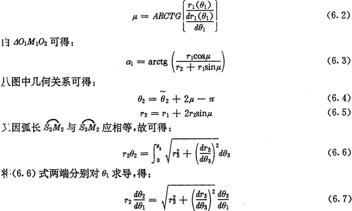 從以上設(shè)計過程可以看出,根據(jù)非圓太陽輪設(shè)計行星輪為圓的純滾動非圓行經(jīng)齒輪傳動機(jī)構(gòu)時,并不是對任意指定的太陽輪節(jié)曲線都有解。當(dāng)太陽輪節(jié)曲線的周期數(shù)n1給定后,節(jié)曲線必須有兩個可調(diào)整的參數(shù)(例中的a和b)的要由節(jié)曲線的封閉條件及輪齒等分條件來確定。齒輪模數(shù)m和太陽輪齒數(shù)z1是被預(yù)先指定了的。當(dāng)各參數(shù)求出后,要用不干涉條件(6.28)式進(jìn)行校驗,若發(fā)生干涉,應(yīng)調(diào)整z1數(shù)值,重新計算太陽輪的可調(diào)整參數(shù)。