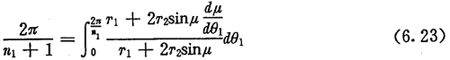 由于每個周期的弧長都是相等的,太陽輪節(jié)曲線的總長等于n1個周期的弧長之和,用n1乘以(6.24)兩邊,可得等分條件的另一種表達(dá)形式: