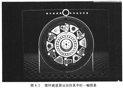 根據(jù)上述基本設(shè)計參數(shù)及各零部件的結(jié)構(gòu)參數(shù),將各主要運動部件的工作過程在計算機屏幕上動態(tài)顯示出來。圖8.2是動態(tài)仿真過程中的一幀圖象。計算機仿真結(jié)果與理論分析完全一致。