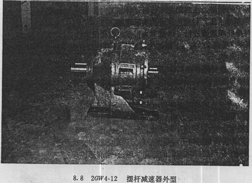 擺桿減速器的其它零部件都是在解放軍7435工廠進行加工的,并在該廠完成裝配。圖8.7為2GW4-12擺桿減速器正在裝配之中,圖8.8是該機外型。裝配后,運轉(zhuǎn)2個小時左右,機器噪音小,運轉(zhuǎn)平穩(wěn),工作狀態(tài)良好。
