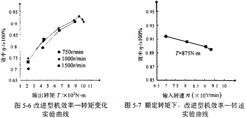 對(duì)三環(huán)減速機(jī)原型機(jī)和改進(jìn)型機(jī)進(jìn)行效率實(shí)驗(yàn),在相同的傳動(dòng)條件下,改進(jìn)型機(jī)的效率略高于原型機(jī),在額定轉(zhuǎn)速和額定轉(zhuǎn)矩下,傳動(dòng)效率可達(dá)92%。