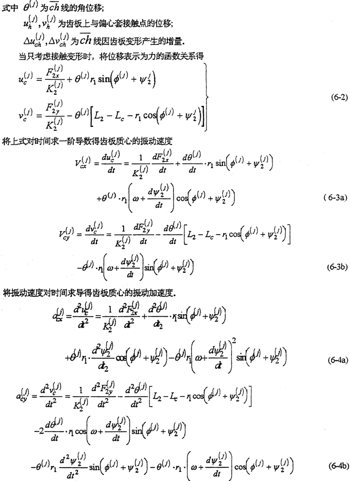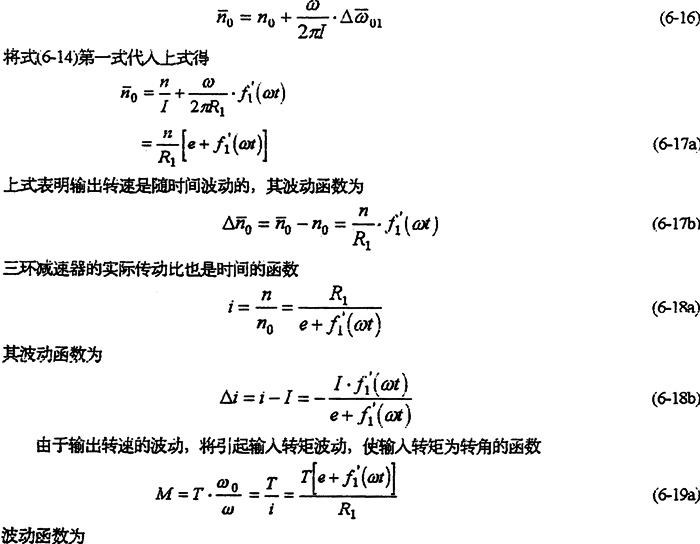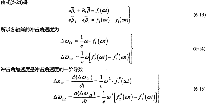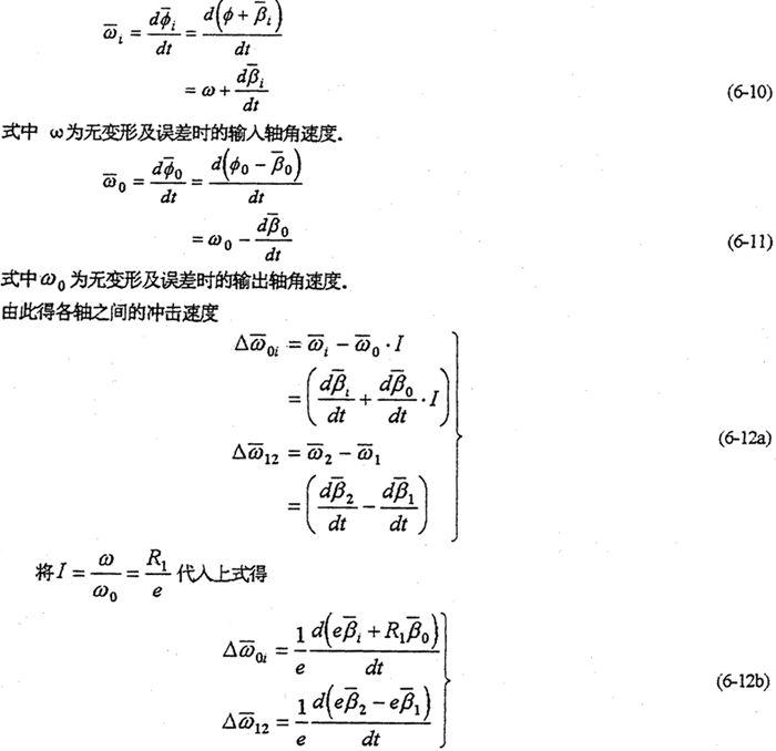 由于減速器機(jī)構(gòu)的變形及各構(gòu)件的誤差,使各傳動(dòng)軸的角速度及角加速度不再滿足條件式(6-8)及式(6-9),亦在運(yùn)轉(zhuǎn)過程中各軸之間存在角速度及角加速度的沖擊現(xiàn)象。該沖擊將直接導(dǎo)致系統(tǒng)振動(dòng),使輸出速度產(chǎn)生波動(dòng)、降低其輸出的穩(wěn)定性,并產(chǎn)生沖擊載荷。