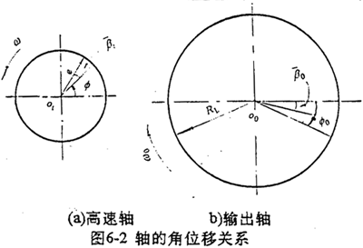 設(shè)在某t時(shí)刻,各軸所轉(zhuǎn)的角位移分別產(chǎn)φ1,φ2,φ0。如圖6-2所示,則各軸的角速度為