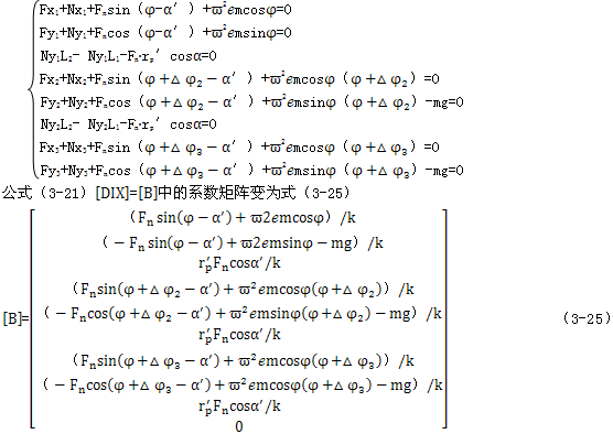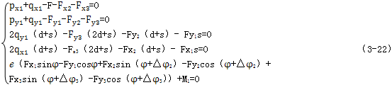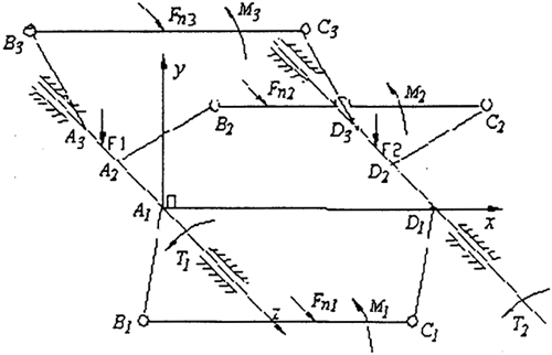 共可列出10個(gè)方程,聯(lián)立式(3-10)或(3-11),對(duì)于多相并列雙曲柄結(jié)構(gòu),用一般靜態(tài)力學(xué)分析方法,可列出3n+10個(gè)方程,而未知量的總數(shù)為4n+9(運(yùn)動(dòng)副反力和輸入力矩),故機(jī)構(gòu)中未知量,(n-1)正是機(jī)構(gòu)中的虛約束個(gè)數(shù),為了得到補(bǔ)充方程,必須考慮構(gòu)件的變形協(xié)調(diào)要求。