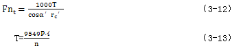 在這里擺線針輪輪齒的受力情況作一個(gè)簡(jiǎn)化。因輪齒上受到的力均通過(guò)擺線輪的節(jié)圓上的一點(diǎn),故可能所有輪齒受到的力簡(jiǎn)化成為一個(gè)合力,與擺線輪齒運(yùn)動(dòng)方向的夾角為α′(即嚙合角)。見圖3.4。