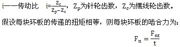 在不作特殊說(shuō)明時(shí),以下的受力分析是基于給定的條件:要率p=15kw,輸入轉(zhuǎn)速n=1500rpm,速比i=17,偏心距e=5,嚙合角α=30°。