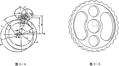 (2)行星輪:它與轉(zhuǎn)臂(曲柄軸)固聯(lián),兩個(gè)行星輪均勻地分布在一個(gè)圓周上,起功率分流的作用,即將輸入功率分成兩路傳遞給擺線針輪行星機(jī)構(gòu)。