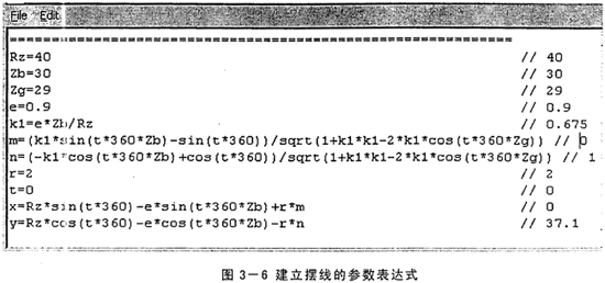 參照上述的擺線輪齒廓形狀曲線表達(dá)式,在UG中建立的擺線的參數(shù)表達(dá)式見(jiàn)下圖: