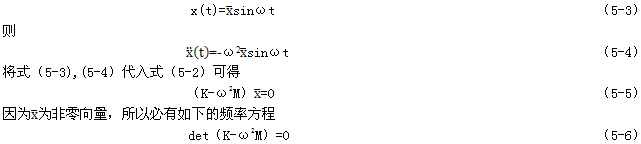 設(shè)多自由度系統(tǒng)自由振動(dòng)中某一簡諧振動(dòng)形式的解為