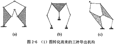 由(1)圖,取不同的構(gòu)件為機架,經(jīng)過特定化后,可轉(zhuǎn)化為三種導(dǎo)出機構(gòu),如圖2-6。
