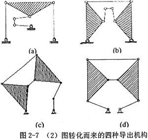 由(2)圖,取不同的構(gòu)件為機架,經(jīng)過特定化后,可轉(zhuǎn)化為四種導(dǎo)出機構(gòu),如圖2-7。
