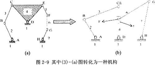 (4)具體化,將每種可行的特殊化運動鏈轉(zhuǎn)換成所對應(yīng)的機構(gòu)簡圖,以獲得可行的機構(gòu)。