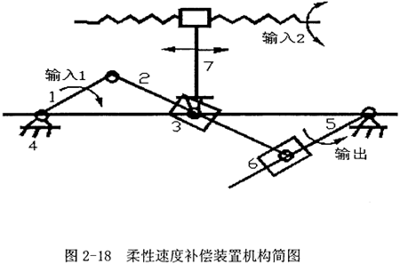 在這里該柔性速度補償裝置的特點可以簡述為,實質(zhì)是一個二自由度機構(gòu),用一個等速電機驅(qū)動一個輸入構(gòu)件,而另用一個伺服電機對另一輸入構(gòu)件進(jìn)行控制與調(diào)整,控制器和檢測系統(tǒng)判斷原執(zhí)行機構(gòu)速度波動的狀況,根據(jù)波動情況實時控制伺服電機對二自由度機構(gòu)的輸入速度和結(jié)構(gòu)參數(shù)進(jìn)行調(diào)整,得到可控制的速度波,以和原執(zhí)行機構(gòu)的速度波疊加抵消,得到理想的速度輸出。