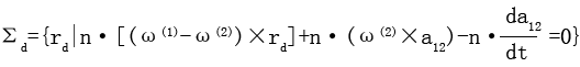 由(2-5-1)式知,它是r(1)、r(2)需滿足的微分方程。Σ1、Σ2在接觸的最初階段,接觸參考點(diǎn)在接觸力作用下,隨著Σ1、Σ2的相對運(yùn)動(dòng),變形逐漸增大,在此階段,
