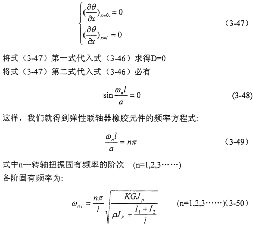 式中A,B和C,D——積分常數(shù),可以通過(guò)邊界條件加以確定,對(duì)于兩端自由的軸,端面扭矩為零,
