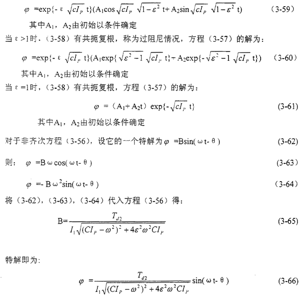 當(dāng)ε<1時(shí),(3-58)有共扼復(fù)根,稱(chēng)為欠阻尼情況,方程(3-57)的解為: