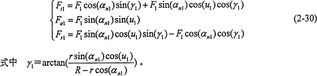 活齒對主動(dòng)軸外正弦滾道作用力的圓周力分量Ft1、軸向力分量Fa1、徑向力分量Fr1的大小分別為