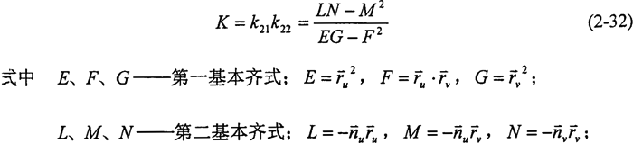 由于正弦滾道齒面是球狀活齒沿空間正弦曲線軌跡運(yùn)動(dòng)包絡(luò)而成,顯見在理想情況下瞬時(shí)接觸線的方向即為正弦滾道齒面的一個(gè)主方向,其對應(yīng)的主曲k21=-1/r′,則另一個(gè)主方向應(yīng)在瞬時(shí)接觸線的法向方向,為得到正弦滾道鑿面在該方向上的主曲率k22,需計(jì)算出正弦齒面在接觸點(diǎn)處的全曲率K,由微分幾何中對全曲率定義有: