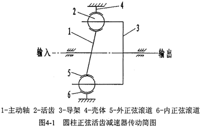 為分析圓柱正弦活齒傳動系統(tǒng)的動態(tài)特性,首先需要根據(jù)系統(tǒng)結(jié)構(gòu)建立其動力學(xué)模型。圓柱正弦活齒傳動的結(jié)構(gòu)簡圖如圖4-1所示。