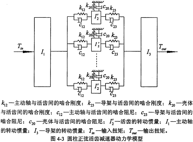 機械傳動系統(tǒng)把運動和動力由動力源傳遞給機器執(zhí)行件的工作過程中,經(jīng)常會受到激振力和激振力矩的作用,從而使傳動系統(tǒng)的零部件產(chǎn)生扭轉(zhuǎn)振動,振動將直接影響到機械系統(tǒng)的精度、效率、壽命、安全性和可靠性,由此而產(chǎn)生的噪音也對環(huán)境產(chǎn)生干擾和危害。因此在設(shè)計機械傳動系統(tǒng)時,必須考慮將振動的量級控制在一定范圍內(nèi),以保證系統(tǒng)具有良好的動態(tài)特性。為設(shè)計高性能的圓柱正弦活齒減速器,了解該傳動系統(tǒng)的動態(tài)特性,有必要對其進行扭振動力學(xué)分析,以便評價其振動水平,并找出影響動態(tài)特性的薄弱環(huán)節(jié),從而為進一步動態(tài)結(jié)構(gòu)優(yōu)化設(shè)計、提高減速器的動態(tài)性能提供了理論依據(jù)。評價傳動裝置的動態(tài)性能通常有試驗法和計算法兩種方法。一般情況下,試驗法可獲得較準(zhǔn)確的結(jié)果,但只適用于評價給定的實物或模型。而計算法通過建立動力學(xué)模型,在設(shè)計階段就可獲得評價系統(tǒng)動態(tài)性能所需的各種數(shù)據(jù)資料,并可根據(jù)分析結(jié)果來進行優(yōu)化設(shè)計,從而在設(shè)計階段就能得到一個具有良好動態(tài)特性的系統(tǒng)設(shè)計方案,因此計算方法比試驗法更經(jīng)濟實用,但數(shù)學(xué)模型的建立具有一定的難度。