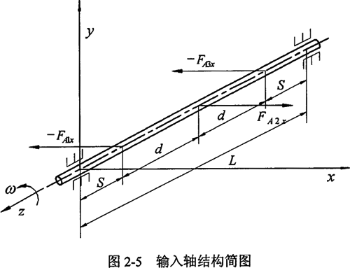式中 △xAij,△xPAij,△xnAij,——在一輸入軸上環(huán)板處Ai點(diǎn)的由于力FAjx,F(xiàn)PAjx,F(xiàn)nAjx作用的撓度(j=1,2,3);這里,F(xiàn)Ajx=FPAjx+FnAjx。
