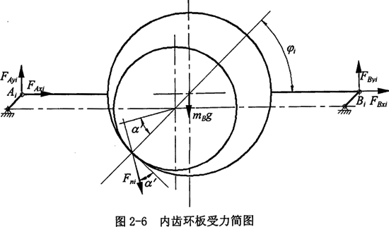1.轉(zhuǎn)臂軸承上的作用力分析 內(nèi)齒環(huán)板受力見圖2-6所示。