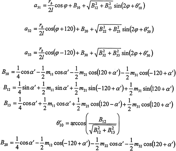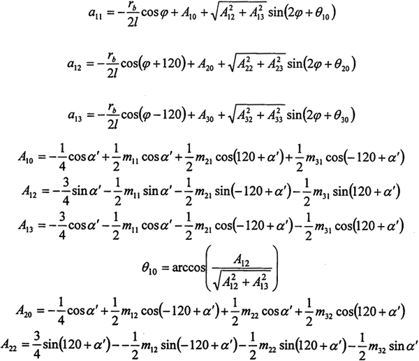 由上式可看出,任意時(shí)刻各環(huán)板上作用的嚙合力是不相等的,且是與轉(zhuǎn)角、環(huán)板和曲柄軸結(jié)構(gòu)尺寸、壓力角以及偏心尺寸有關(guān)的復(fù)雜函數(shù),假設(shè)各嚙合力相等或者是成一簡單的函數(shù)關(guān)系都是與實(shí)際嚴(yán)格不符的。若需要用簡潔的函數(shù)關(guān)系加以描述,應(yīng)首先利用上式求出輸出軸旋轉(zhuǎn)一周時(shí)的數(shù)個嚙合力的表達(dá)式,這里不作詳細(xì)的討論。