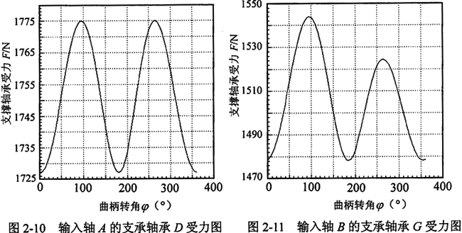 將上述方程中的A和D′換成B和G′,便得到了另一根曲柄軸的力和力矩方程。進(jìn)而得到另一曲柄軸的支撐軸承的受力。