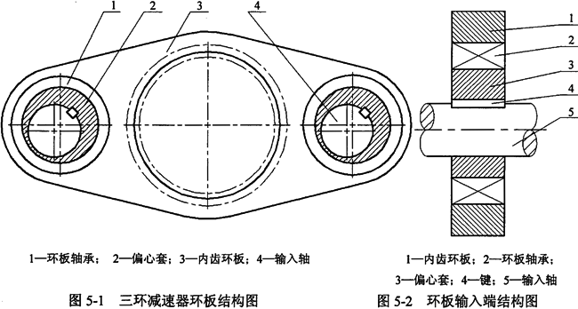 3.采用一級傳動后,作為二級傳動三環(huán)傳動的輸入轉(zhuǎn)速減小,二級傳動中單片環(huán)板所產(chǎn)生的慣性力和慣性力矩較原三環(huán)減速器的要小的多,環(huán)板作用在高速軸上的慣性力自然下降,同時,新型減速器整機的慣性力和慣性力矩為零,使得慣性力(力矩)引起的振動減弱。