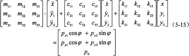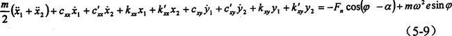 對于與x坐標(biāo)軸方向相垂直的y方向,也可仿上面過程進(jìn)行推導(dǎo),但由于其激振力不含2φ項其結(jié)果比x坐標(biāo)軸方向要簡單一些。