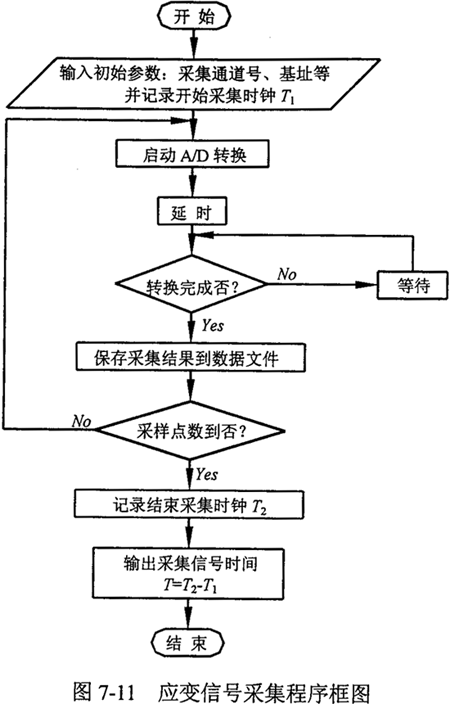 對應于所選用的A/D轉換板,編制的應變信號采集程序框圖如圖7-11所示。
