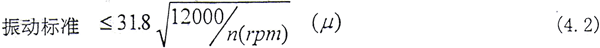 根據(jù)文獻(xiàn)[9],機(jī)組振動(dòng)都是以軸承的振動(dòng)為標(biāo)準(zhǔn),設(shè)備制造驗(yàn)收標(biāo)準(zhǔn)以美國(guó)API、日立、GB、FB(風(fēng)機(jī)專(zhuān)業(yè)標(biāo)準(zhǔn))順序執(zhí)行。其中API617—1979中2.8.25節(jié)關(guān)于轉(zhuǎn)軸(靠近軸承的任何截面)振動(dòng)標(biāo)準(zhǔn)