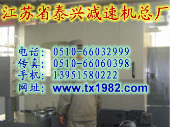 江蘇泰興減速機總廠業(yè)務(wù)部 在改革開放中崛起的江蘇省泰興減速機廠,現(xiàn)已成為中國減速機生產(chǎn)基地,中國機械工業(yè)500強重點企業(yè)。2004年公司完成含稅銷售收入6億元,創(chuàng)利稅1.5億元,交納泰興兩稅及基金規(guī)費8500萬元。公司