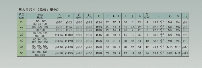 優(yōu)點(diǎn): 1、結(jié)構(gòu)簡單,采用一個柔輪、兩個鋼輪和一個波發(fā)生器 。 2、傳動速比大,單級減速可速比范圍50:1---200:1 3、承載能力高,嚙合赤數(shù)多,雙波傳動,柔輪采用高強(qiáng)度材料,齒與齒之間是面接觸。 4、精度高,嚙合齒數(shù)多,誤差平均化,即齒嚙合對誤差有相互補(bǔ)償作用。可采用微量改變波發(fā)生器半徑增加柔輪的變形使齒隙很小甚至做到無側(cè)隙嚙合。 5、體積小,結(jié)構(gòu)簡單,可以做到小體積大速比。 6、可向密閉空間傳遞運(yùn)動。 7、相位調(diào)節(jié),多應(yīng)用與印刷機(jī)械。缺點(diǎn): 不利于用在傳送比小于50的場合。應(yīng)用范圍: 大多應(yīng)用在印刷機(jī)械,做相位調(diào)節(jié)用。